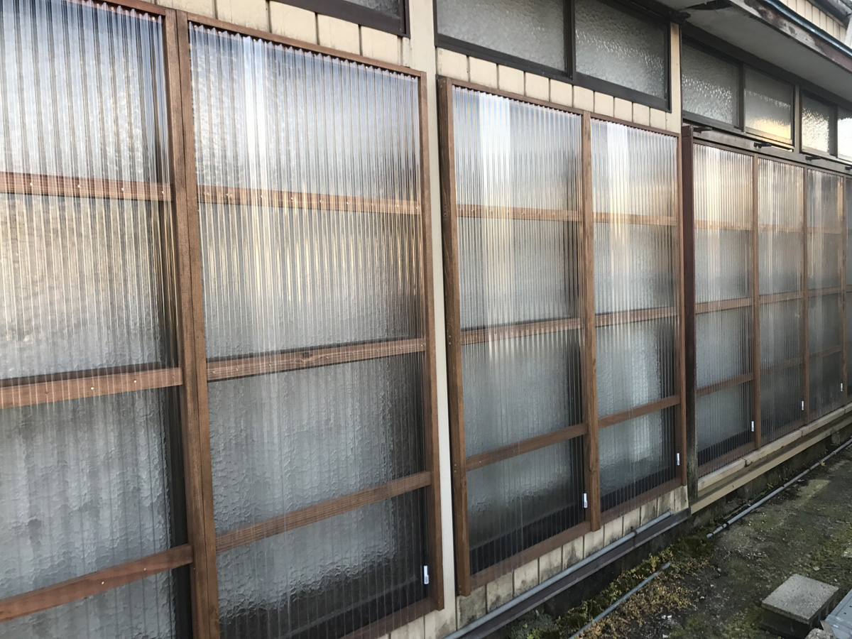 以前は、木枠にポリカーボネートの波板を打ち付けたタイプのものばかりでしたが、上の写真のようなものや、「冬がこいかぁ〜」みたいな雰囲気をなるべく変えれるよう色々なタイプのものもオーダーに答えており、製作可能なタイプは多岐にわたってきております。自ずと価格もさまざまですので、問い合わせフォームよりご確認ください。