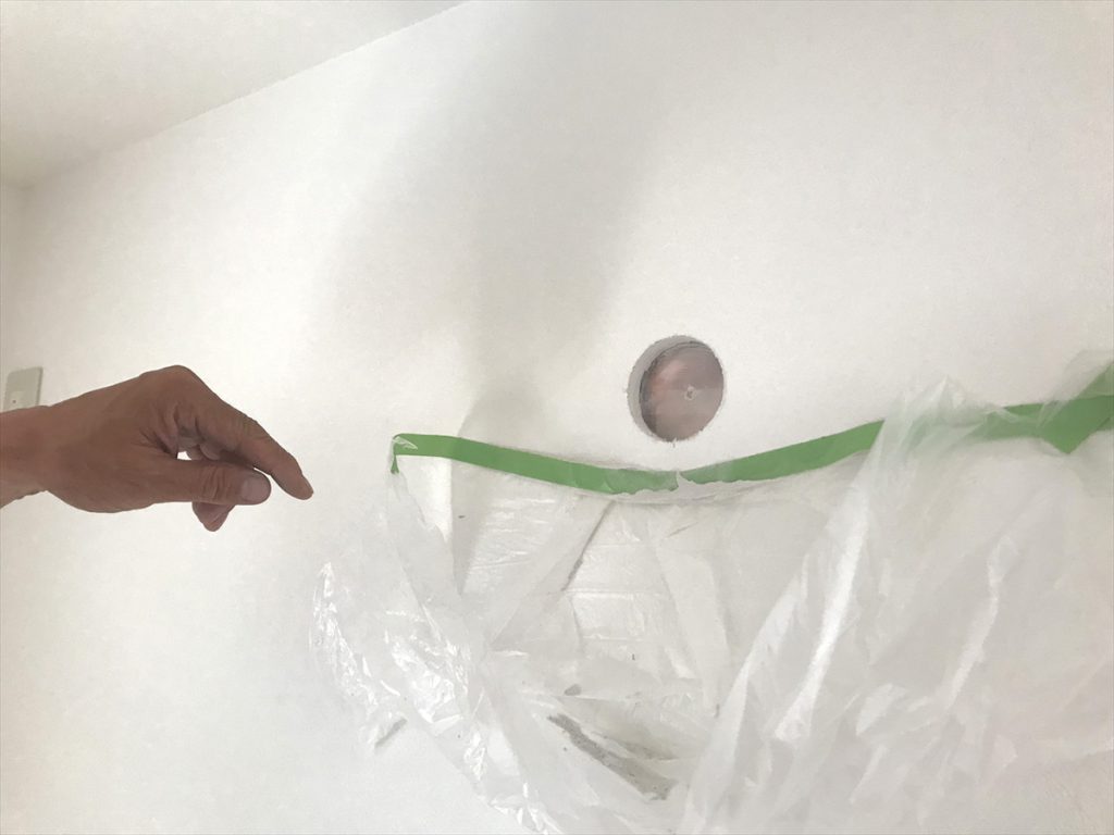今回は、暮らし方の変化に伴う冷房エアコンの追加。メモどおりにゆっくり刃物で石膏ボードを切り取って、開けるとしっかり保護シートがみえました。エアコン屋さんとほっと一息。