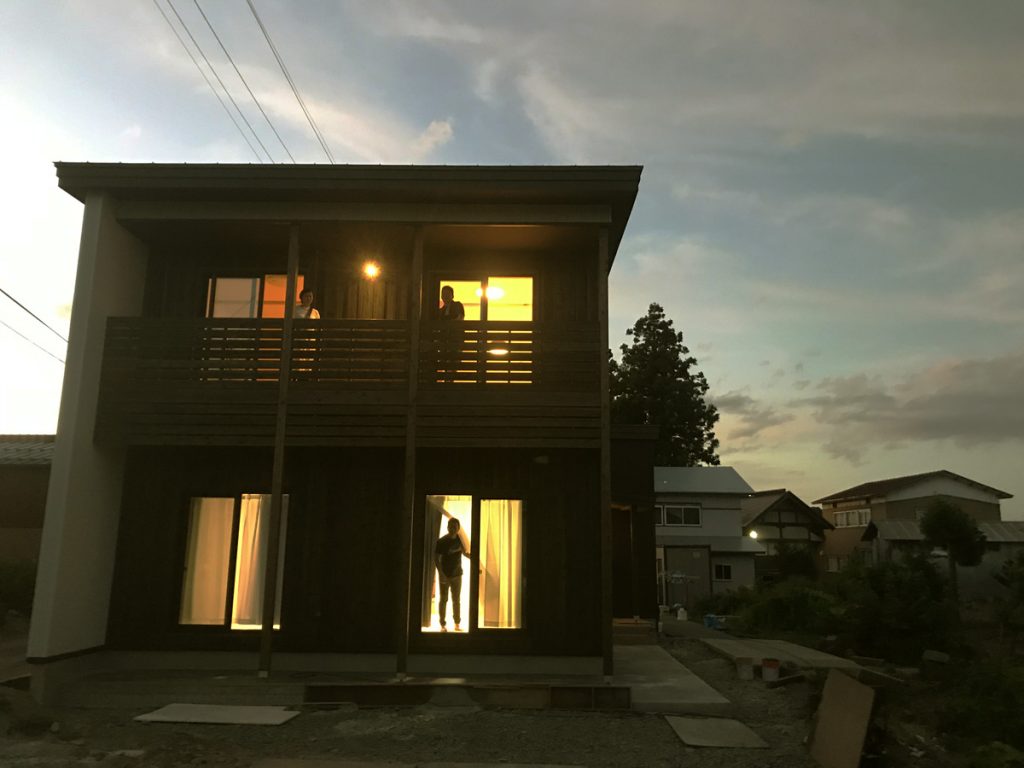 まだまだ、工事完了とは行きませんがあと少し。普段は遠くに住んでいる若夫妻も訪れ、照明とかとかの確認とみんなで、「ここではあーして、バルコニーでビールして」と。